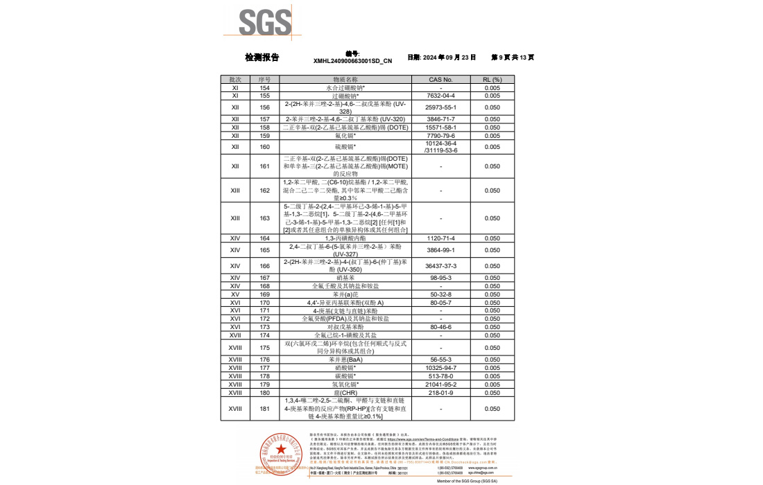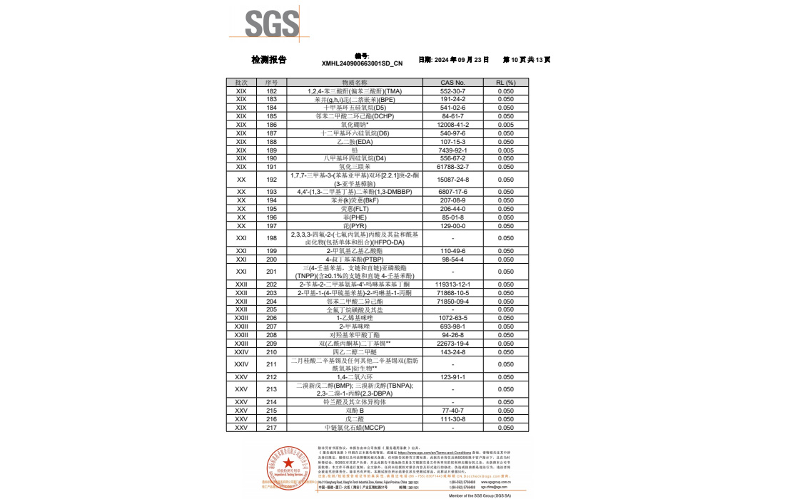 明苯的RoHS和FDA報告