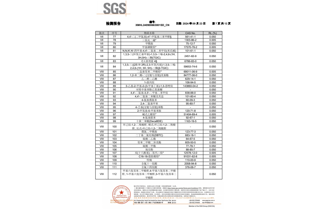 改苯的RoHS和FDA報告