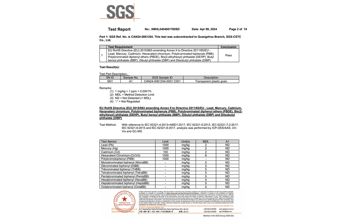 改苯的RoHS和FDA報告